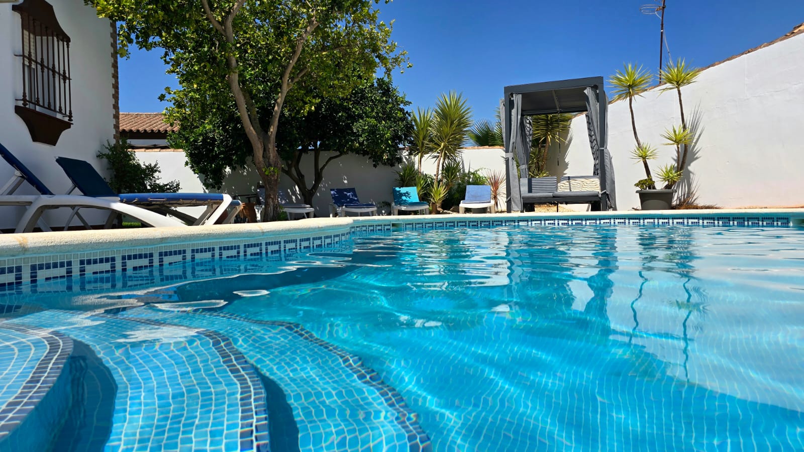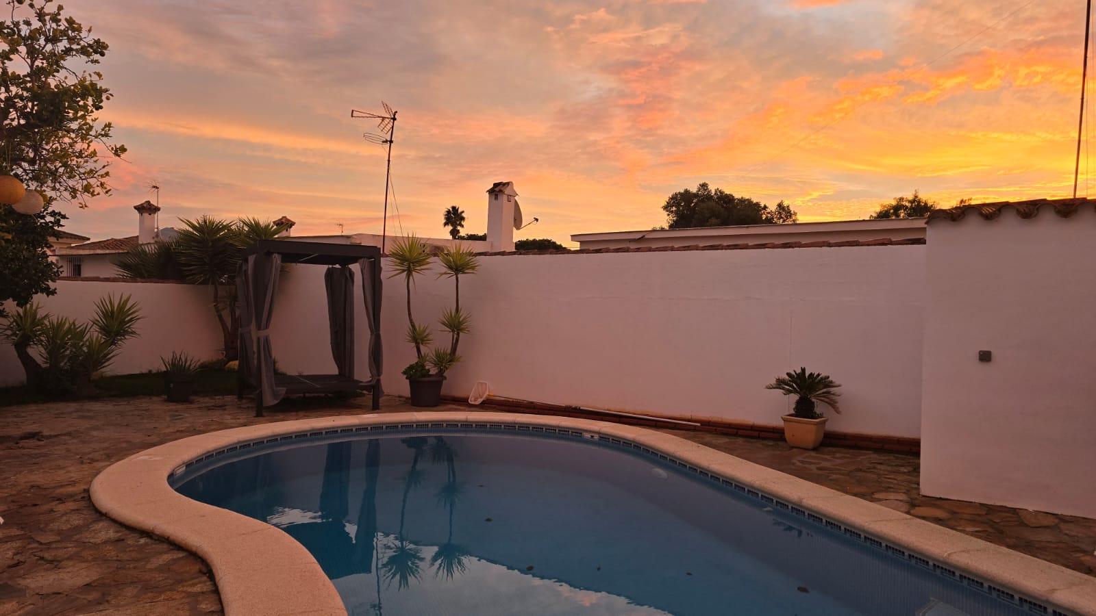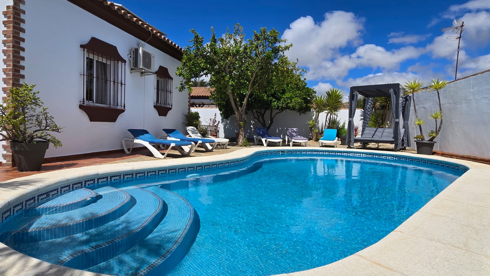 Nur 2,5 km vom Strand entfernt – und doch herrlich ruhig – liegt dein Urlaubszuhause in einer charmanten Sackgasse, umgeben von duftenden Orangenbäumen und dem süßen Nichtstun. Hier wird jeder Tag zur Einladung, das Leben zu feiern – mit einem Sprung in den eigenen Pool, einem Frühstück auf der schattigen Terrasse oder einem kühlen Drink unterm Sternenhimmel.
