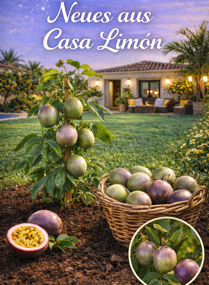 Unsere Maracuja-Pflanze hat uns mit den ersten reifen Früchten überrascht – und wir konnten bereits die erste Ernte einholen. 🌞🌿